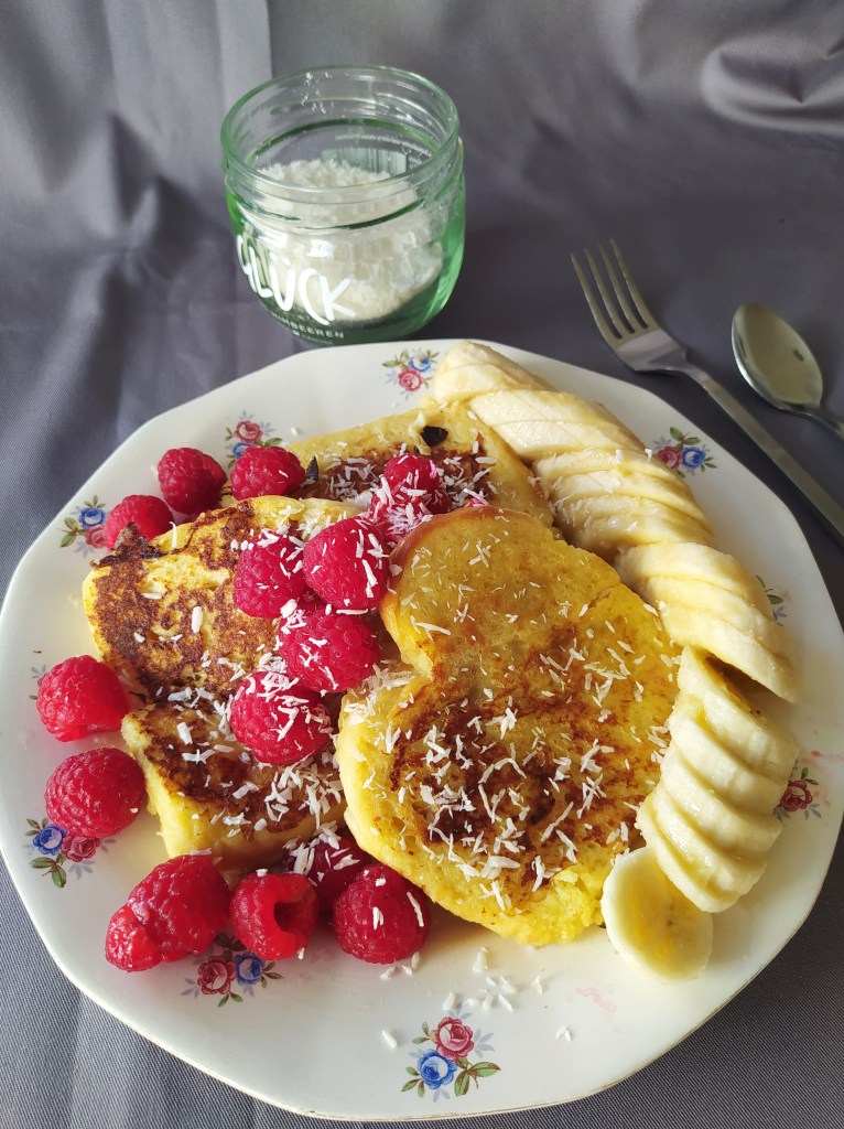Je n’avais encore jamais fait de brioche perdue car je n’avais pas de brioche « à perdre » 🙂 . J’ai fait une brioche maison et après quelques jours, il était temps d’essayer une recette de brioche perdue (French Toast en anglais). Je vous propose une version sans sucre raffiné, délicieuse, bonne pour la santé (et le moral en période de confinement) et les papilles.