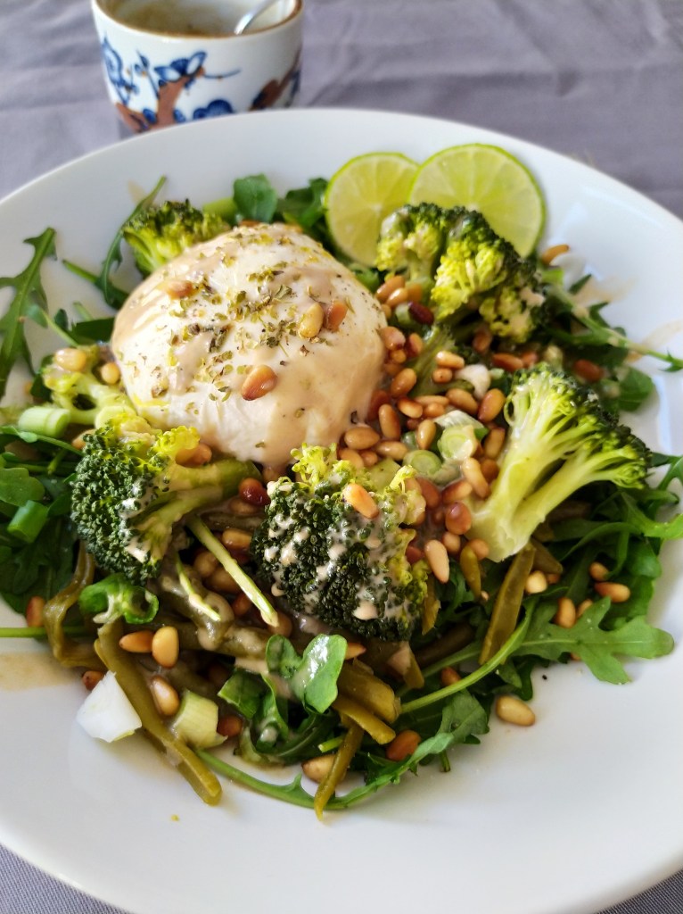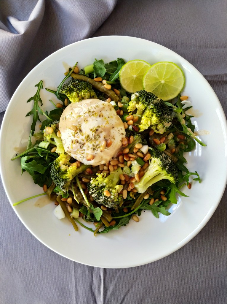 Une explosion de saveurs et de vitamines pour cette salade « verte » à base de brocolis, haricots verts, pignons de pin, rucola, mozzarella et une sauce à la purée de sésame. Le secret d’une salade réussi est de cuire et assaisonner chaque ingrédient séparément. Je vous laisse d’ailleurs avec les instructions.