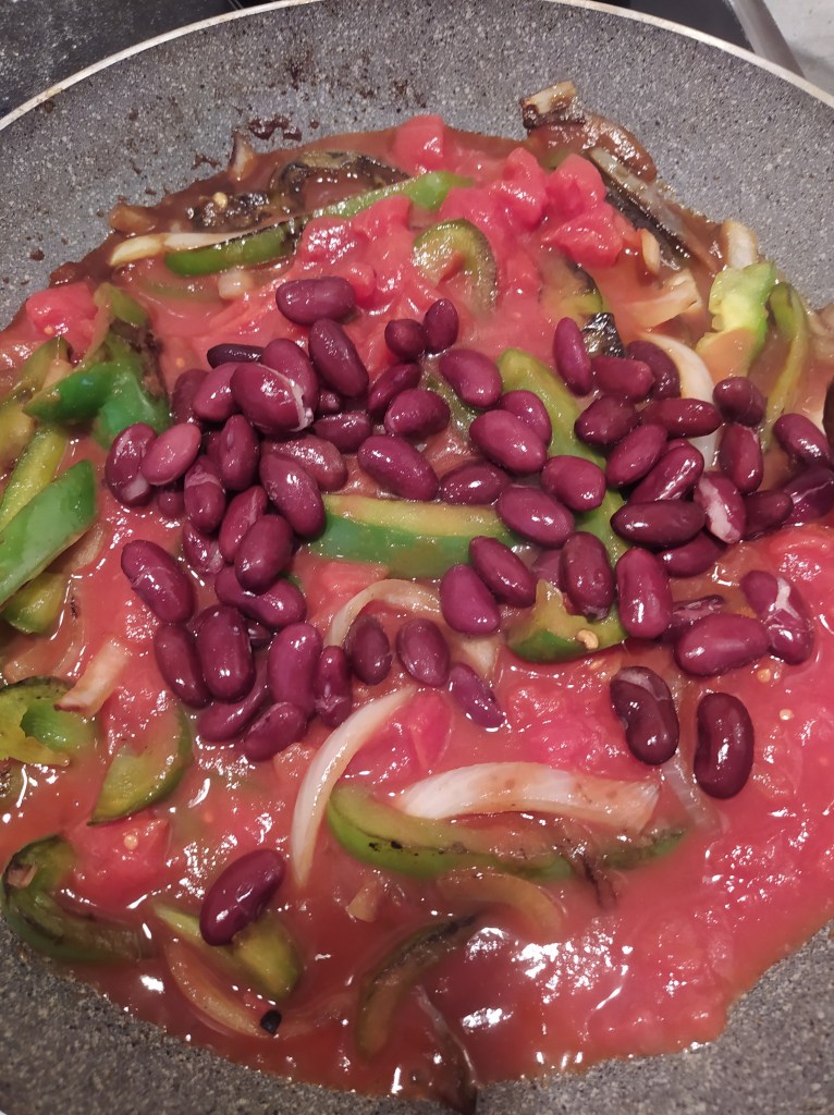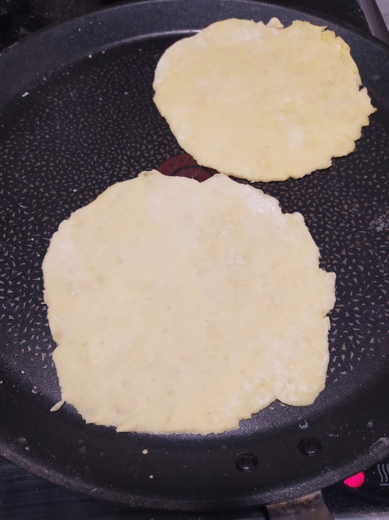 | For 8 tortillas 100 g wheat flour 100 g corn flour 1 teaspoon of salt 16 cl of water 4 tablespoons of sunflower oil For the « cheddar » sauce 200 g coconut cream (or cooking soy cream) 1 tbsp nutritional yeast 3 tsp cornstarch 2 tsp smoked paprika (or sweet paprika) 1 tsp turmeric 1 tsp cumin 1 pinch of salt 1 knob of butter (plant butter if possible) For garnish 40-50 g of textured vegetable protein (TVP) 1 onion 1 green pepper 200 g cooked red beans 1 can of crushed tomatoes (400 g) Spices: chili, paprika, cumin Salt, pepper | Tortillas: 1. In a bowl, mix the flours and the salt. 2. In a saucepan, bring the water and oil to a boil and pour over the dry ingredients. 3. Knead until a homogeneous ball is formed and leave to stand for 30 min. 4. Divide into 8 small balls. Using a rolling pin, spread the dough so as to obtain thin and round patties. 5. In a hot pan (no fat needed), cook the patties for a few minutes on each side. Sauce: 1. Combine all the ingredients in a saucepan. 2. Bring the mixture to a boil so that the sauce thickens. Remove from the heat as soon as the desired consistency is obtained. 3. Add a knob of butter to prevent the sauce from « crusting » and remaining shiny. Filling: 1. Cut the pepper into strips and mince the onion. Rinse the kidney beans. 2. Cook the TVP in a saucepan of boiling water with a tablespoon of soy sauce for 5 min. Drain and set aside. 3. Pour 2 tablespoons of olive oil into a pan and sauté the pepper for 5 minutes then add the onion. Cook 10 min over medium heat. Add the tomato sauce, red beans, TVP, spices and cook over low heat for 15 minutes. 4. At the end of cooking, adjust the seasoning. It’s ready. |