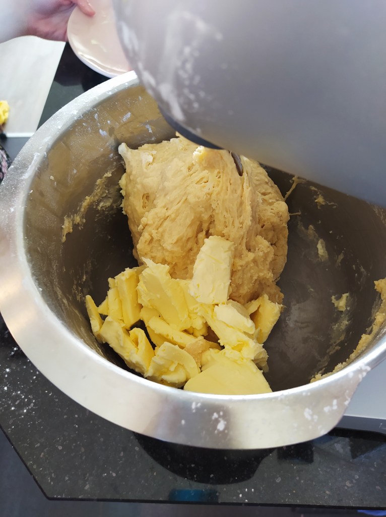 3. Increase the speed to medium and add the butter in pieces until it is all incorporated – at this point the dough will be very wet. Let it continue mixing for another 10 minutes. If the dough is still wet, add up to 30 g of flour.