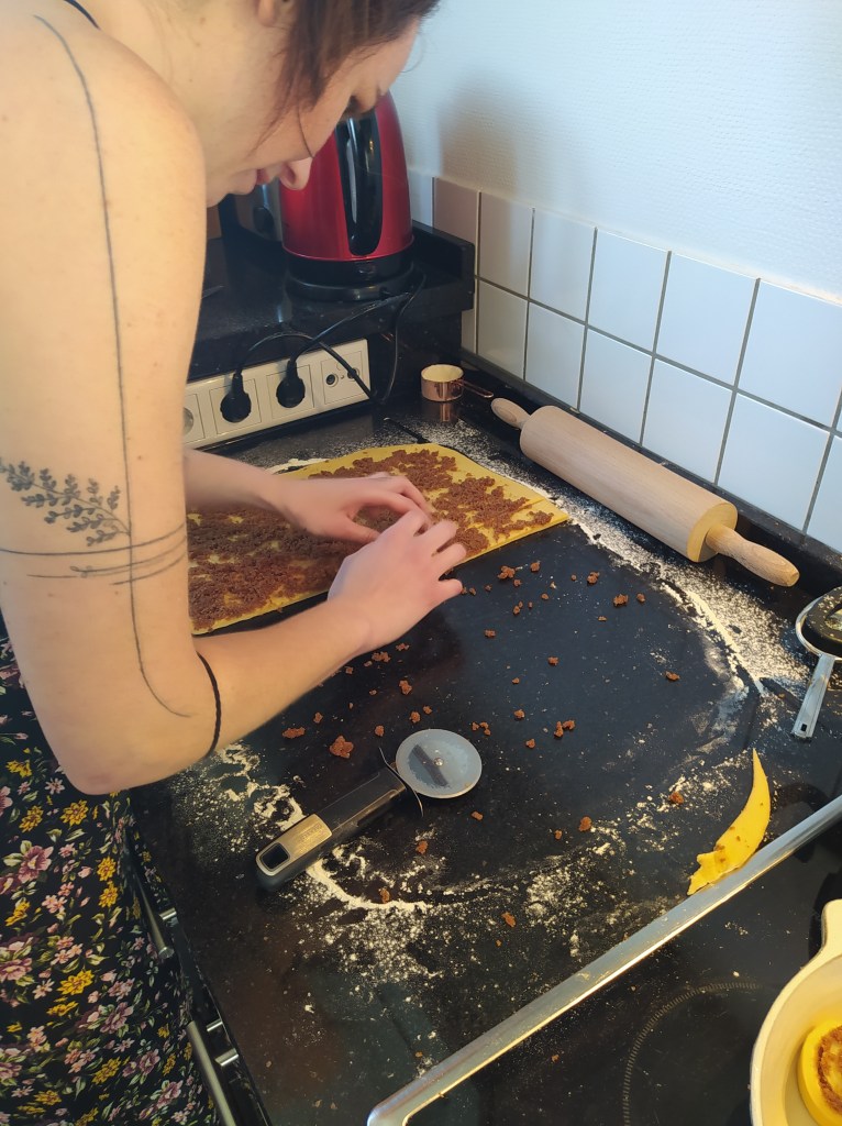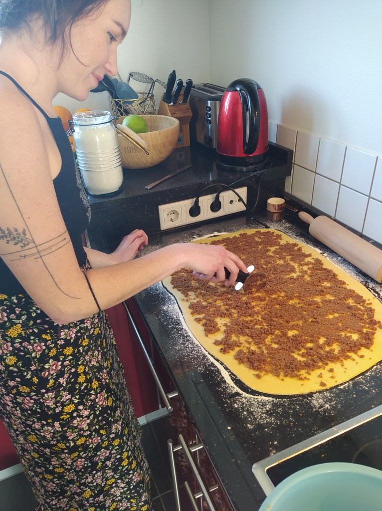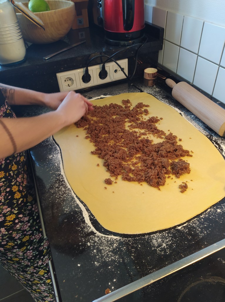 I am a huge fan of these brioche and always look to see if there are any for sale in the bakeries I go through because I didn’t think I could make them myself. But that was before. Before my meeting with Aysha in Düsseldorf. Aysha is American, a German dad and a Japanese mother. We have a common passion for cooking and it was only natural that we decided to work out a recipe for the blog together. Aysha perfectly masters the making of cardamom rolls so we opted for this cinnamon roll recipe (I really wanted to eat it too).