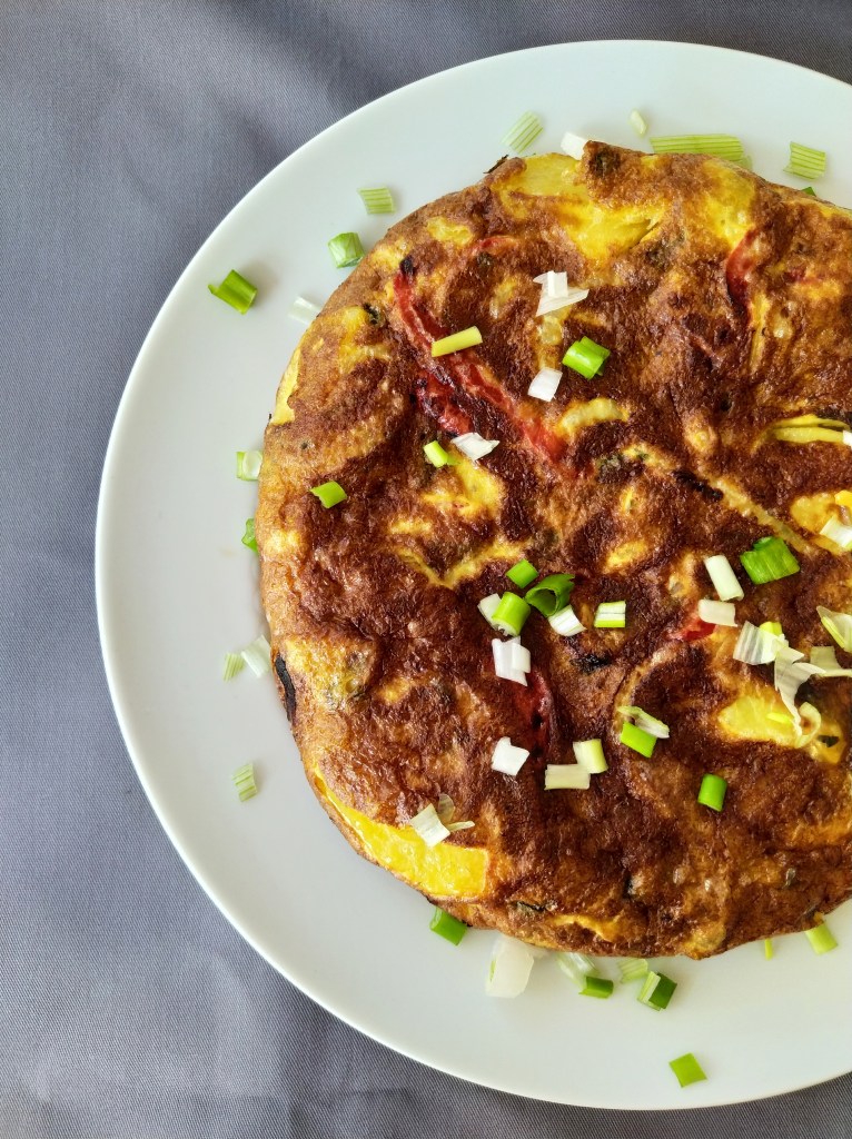 In my time spent abroad I have met many Spaniards who have all made this dish at least once in their life. I observed their techniques and tried different variations and came up with my own recipe for tortilla with peppers. The most complicated thing is to flip the tortilla, but practice makes perfect!