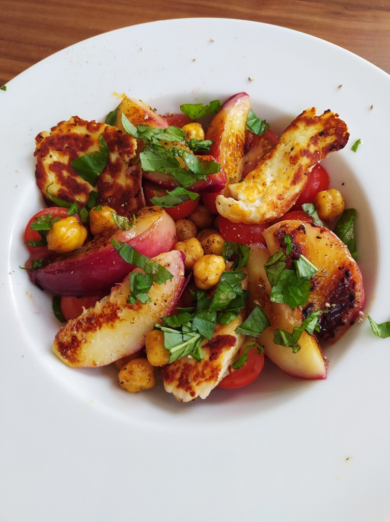 Nectarine Salad With Chickpeas And Grilled Halloumi
